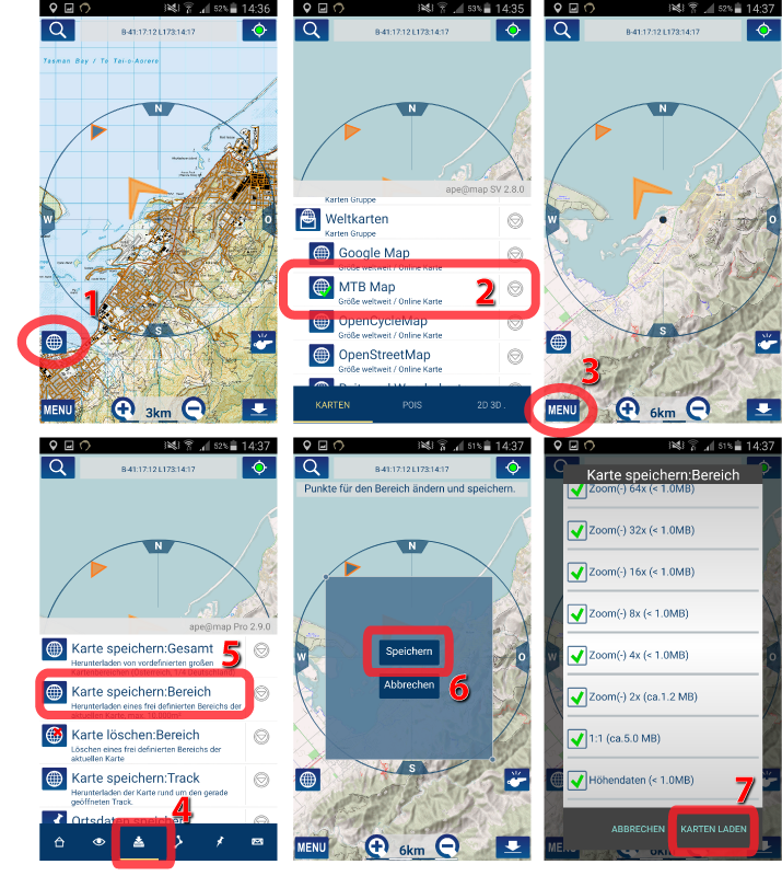 6: Wähle die Zoomstufen und bestätige mit "Karten laden"